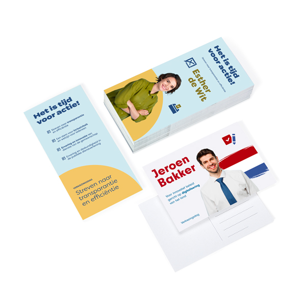 Bestel uw nieuwe politieke visitekaartjes of campagneposters met slechts een paar klikken