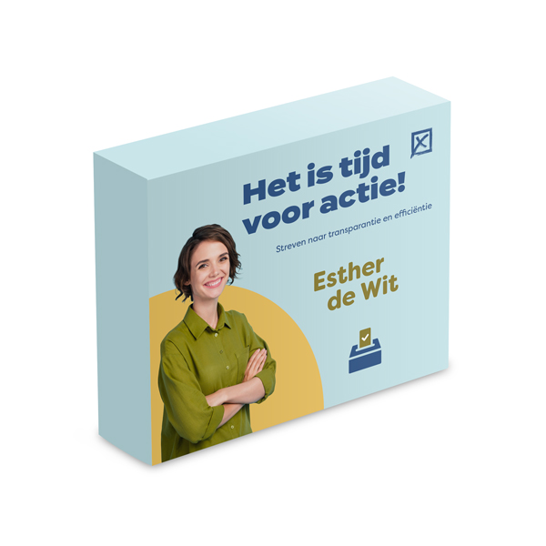 Voor wijdverspreide communicatie kunt u rekenen op een tijdloos promotieproduct: de verkiezingsflyer. Gedrukt in grote hoeveelheden tegen lage prijzen, stellen flyers u in staat uw politieke boodschappen snel en eenvoudig te verspreiden. Ze kunnen worden verspreid op drukke plaatsen zoals pleinen of wegen of bij stands.