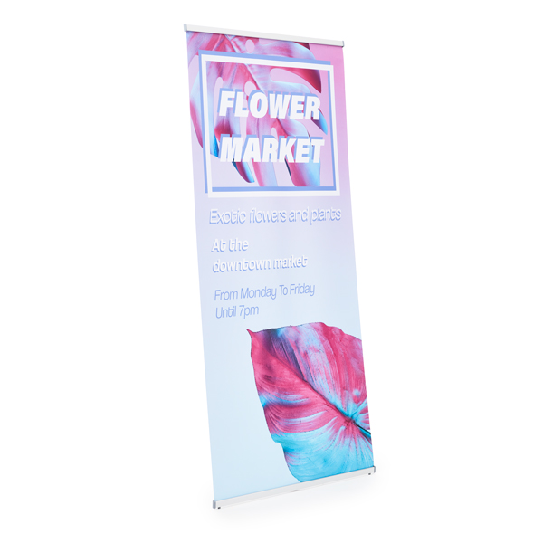 - Expobanner Outdoor XL: Grote enkelzijdige banner met een verzwaarde basis voor betrouwbare stabiliteit. De juiste oplossing om op te vallen.