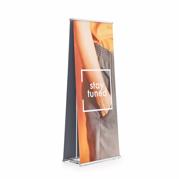 - Expobanner XClassic: Exposant met een klassieke X-ondersteuning voor een optimale spanning van de doek, gedrukt in hoge kwaliteit.
